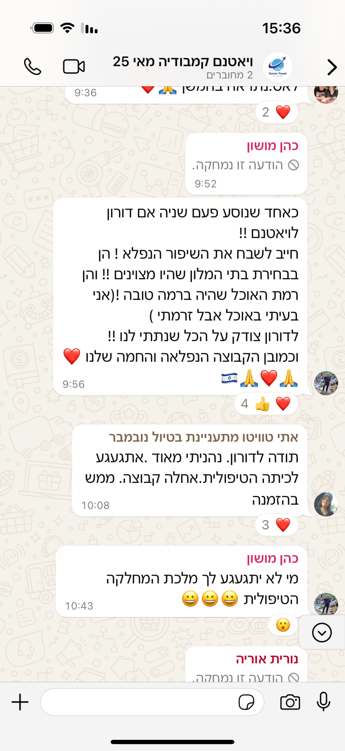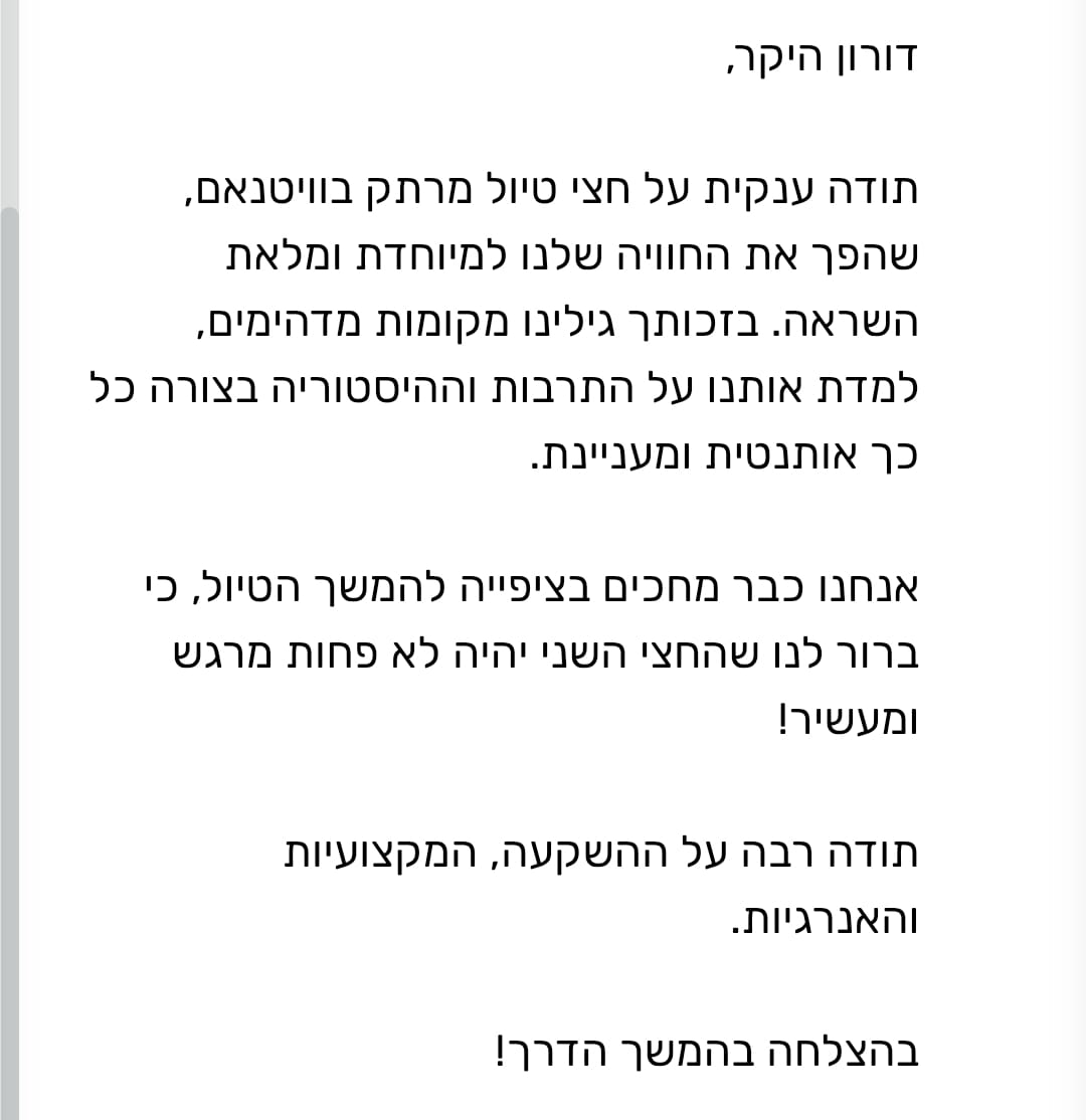 ליווי מלא מהארץ ועד היעד, עם מדריכים דוברי עברית ונציגות מקומית בוויאטנם.